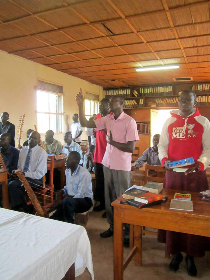 On our last day of Rev. Canon Willy’s class on African Christian Theology, the students thought I should be given an African name.  They said they needed to take some time and discuss it amongst themselves before choosing one.  I wait with great anticipation to see what my African name will be!  I love  that I am getting to know the students more and more and feeling at home with them.  There is one female student, Lucy, amongst all the men in the college.  I want to get to know her better.  She needs a lot of support as the only woman in the group.  The men accept her and are kind to her but I know it must be tough.  Maybe as I get to know her, I will write a little about this brave woman who is following the Lord into ordained ministry. In the video, she is the one playing tambourine.